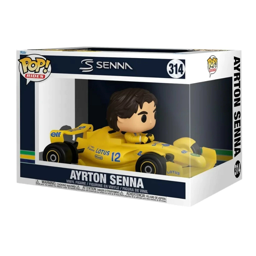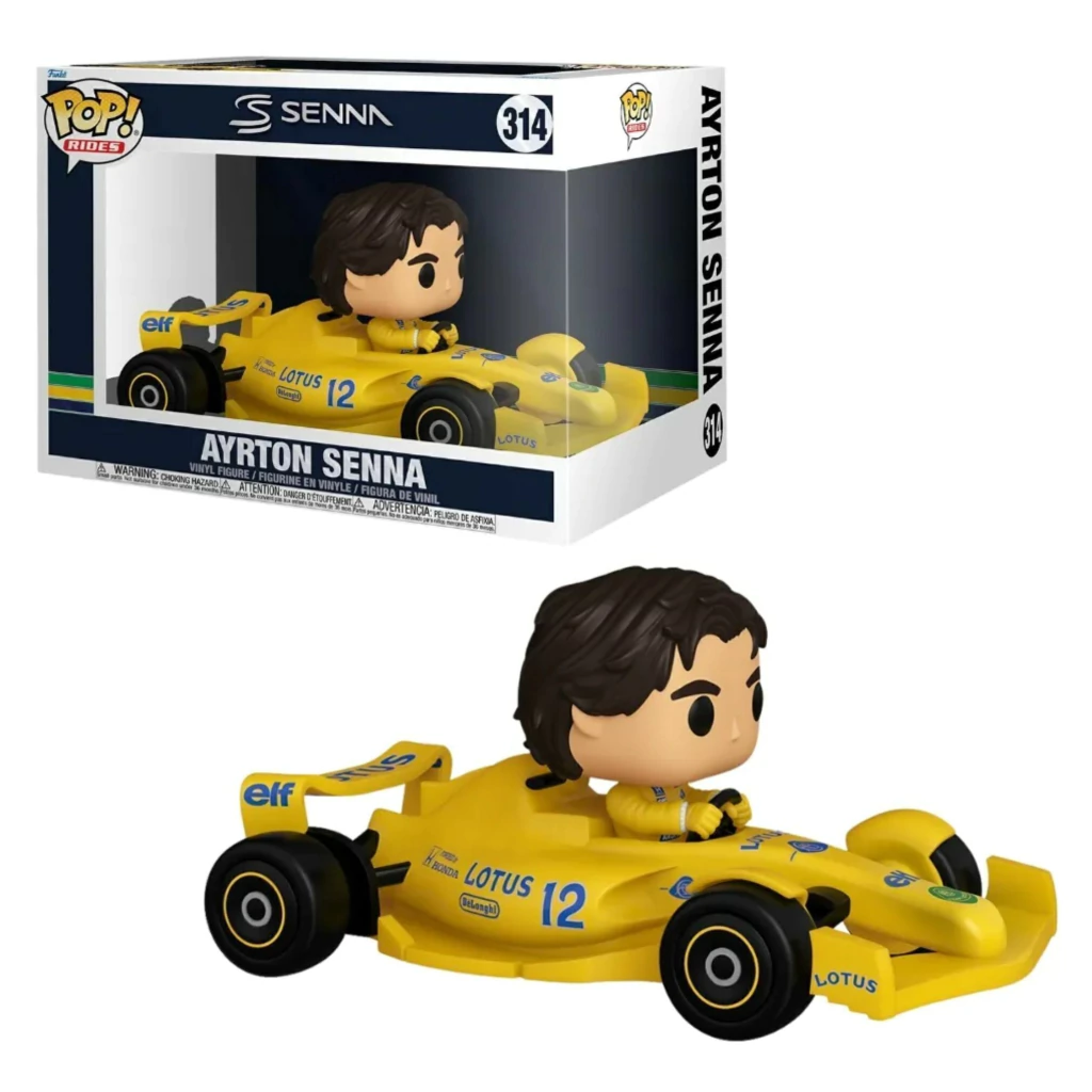 Um dos maiores ícones do automobilismo mundial agora faz parte da sua coleção Funko Pop! O Ayrton Senna, piloto brasileiro tricampeão da Fórmula 1, chega em uma edição especial da linha Rides Deluxe, retratado em seu lendário carro Lotus.