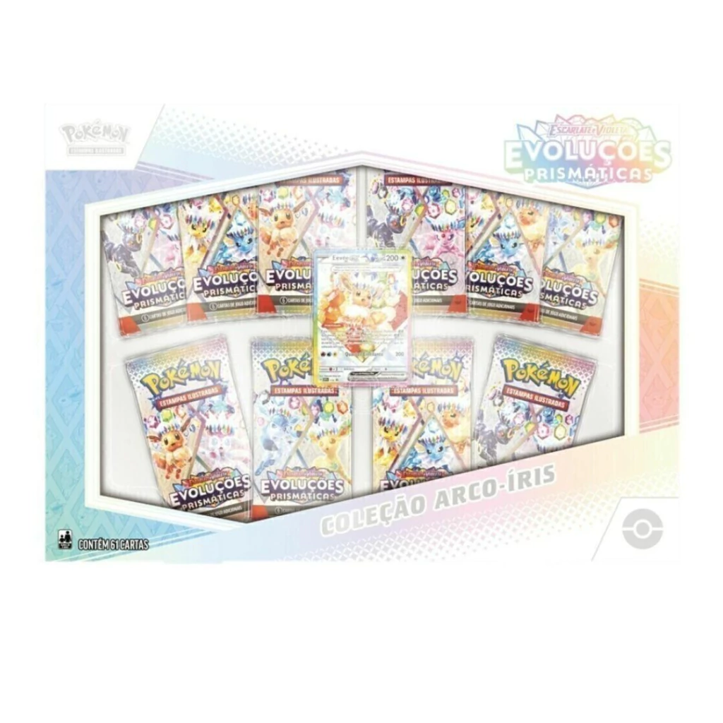 A Box Coleção Arco-Íris EV8.5 de Pokémon é uma edição especial que celebra a beleza e a força dos Pokémon, especialmente Eevee e suas evoluções. Aqui estão alguns detalhes sobre essa coleção.